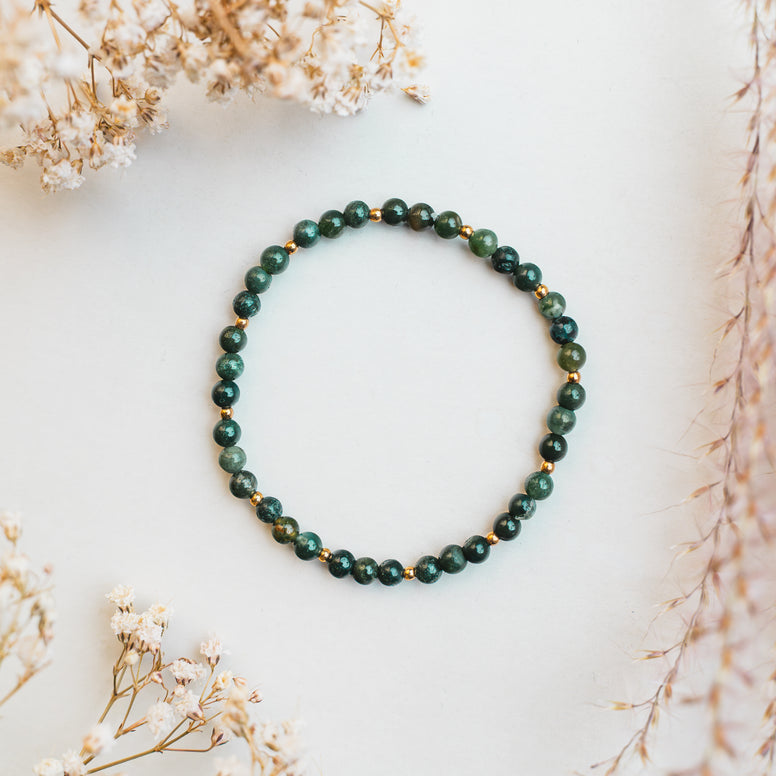 Agat mszysty i indyjski – kamienie uziemienia i wewnętrznej równowagi. Wzmacniają spokój, wspierają regenerację, pomagają w redukcji stresu.